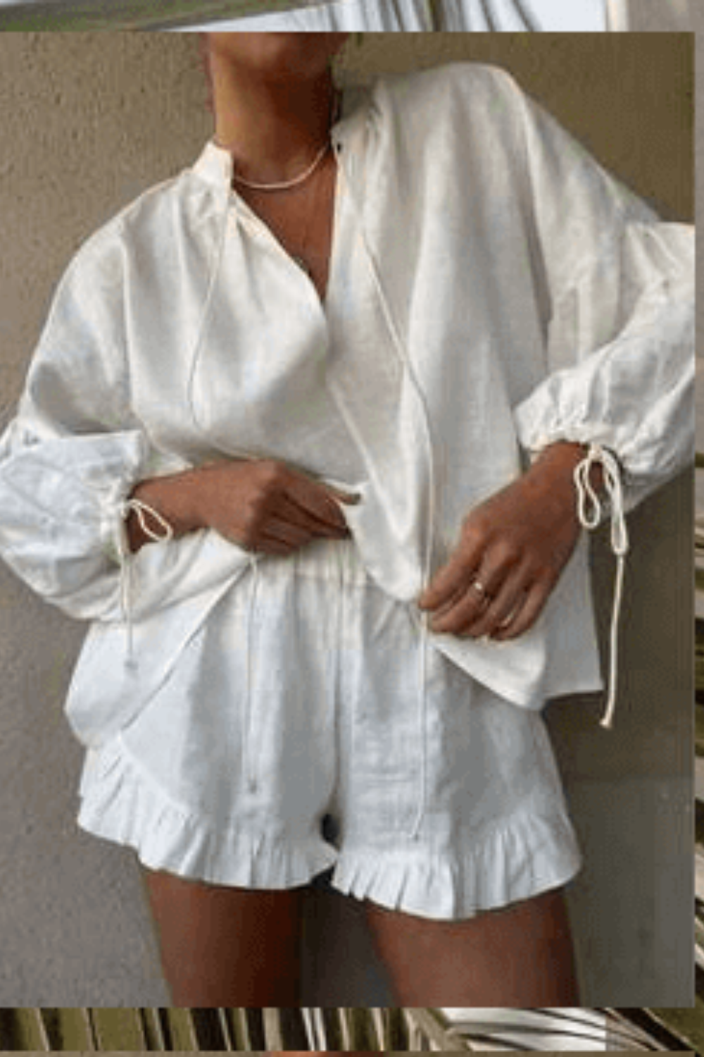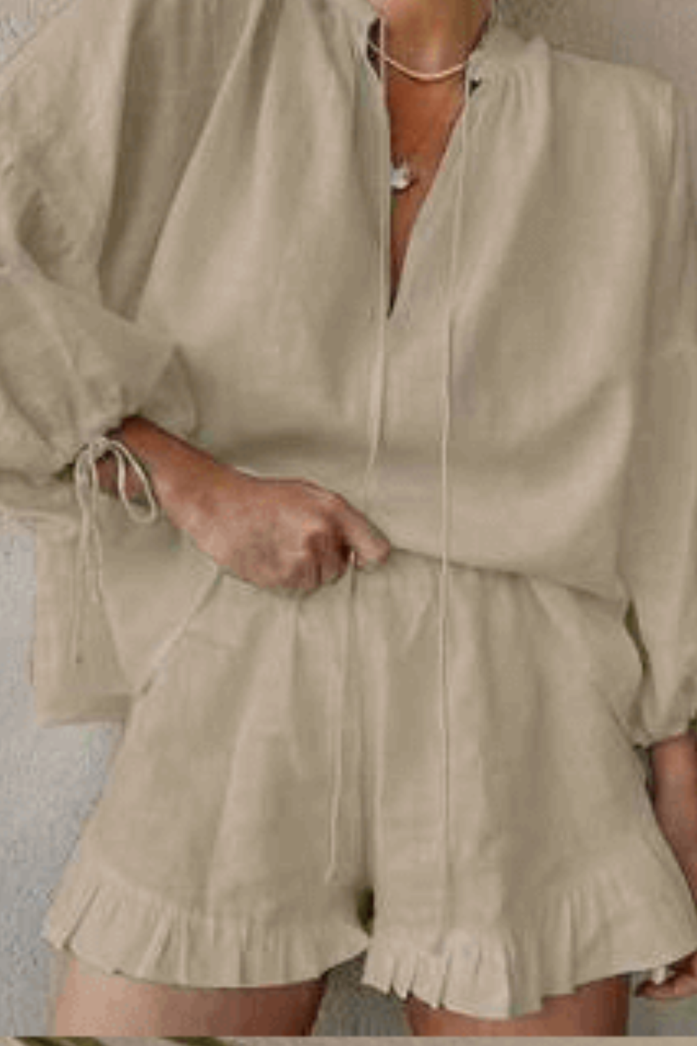 ๐ธ Design: Flattering top with matching lined ruffled shorts.
