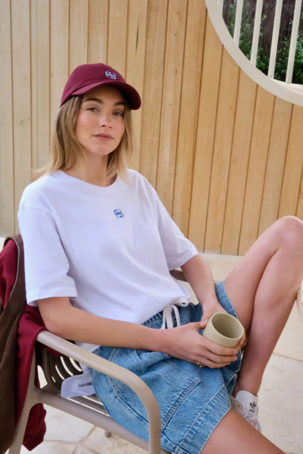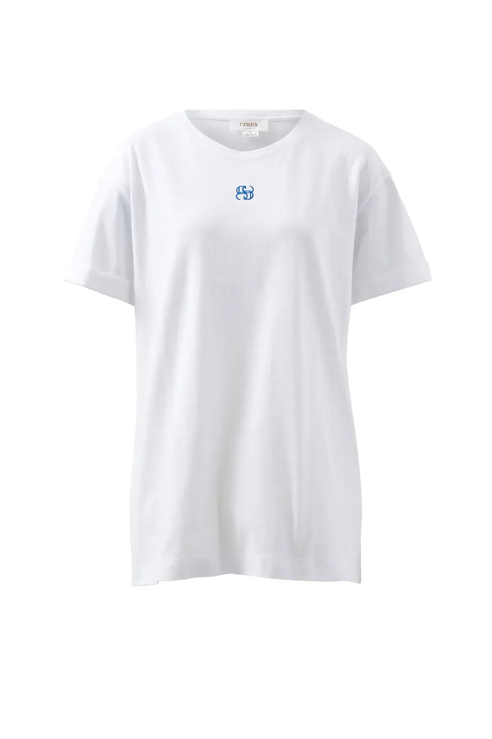☁️ Lola Longline Step Hem Tee – White/Azure Blue Monogram